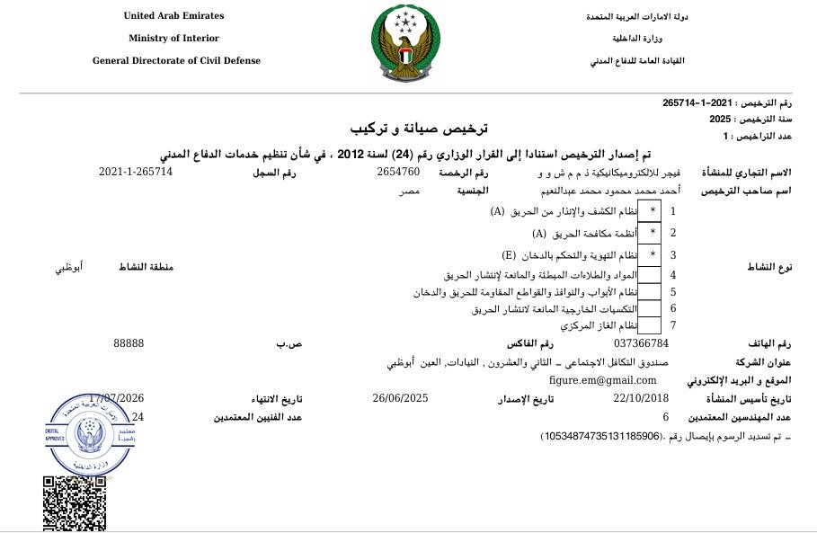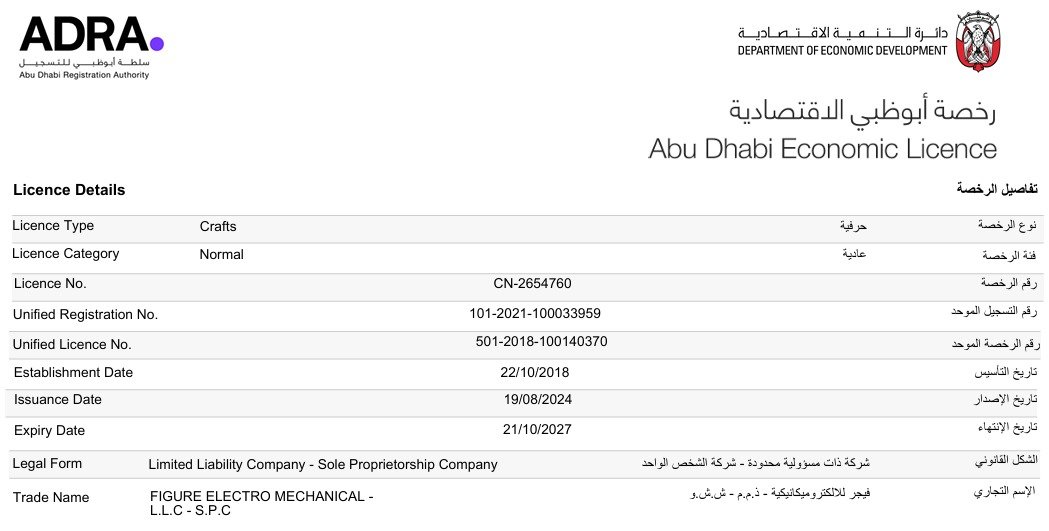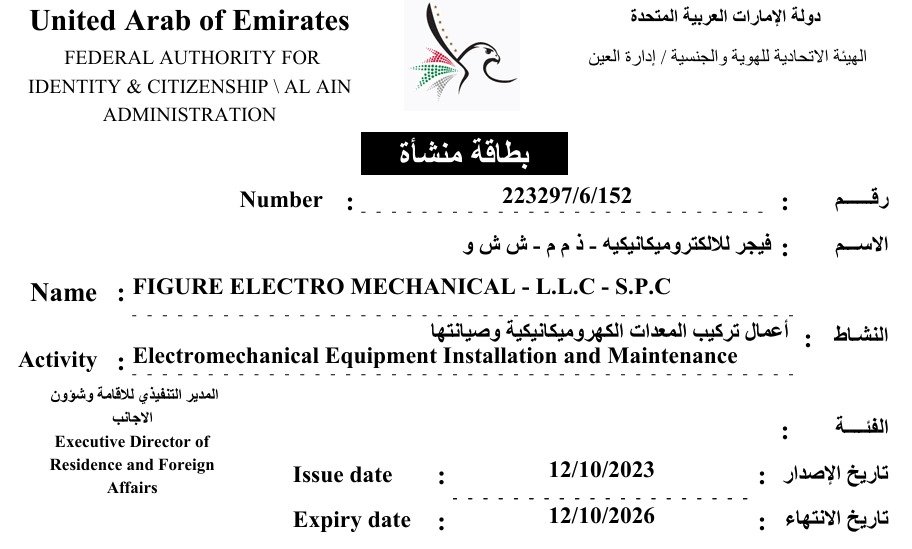 Official certifications and licenses of Figure Electromechanical LLC — reflecting our commitment to quality and compliance.